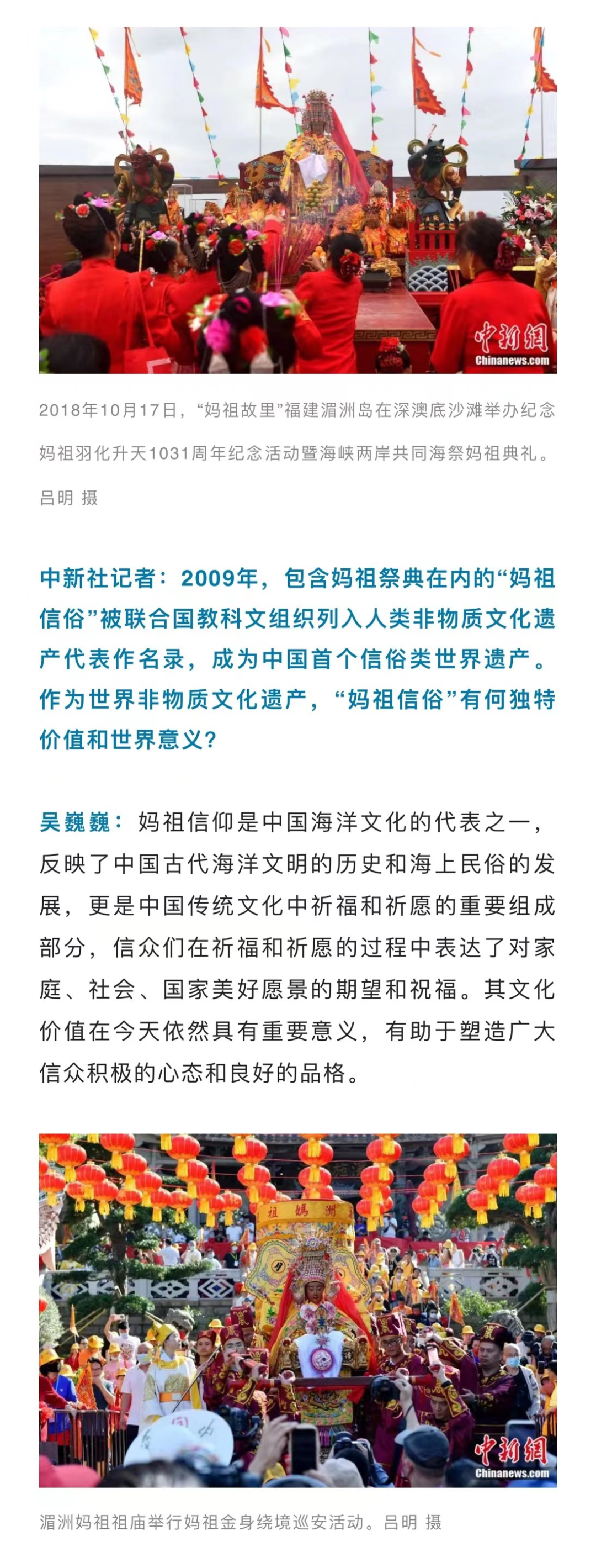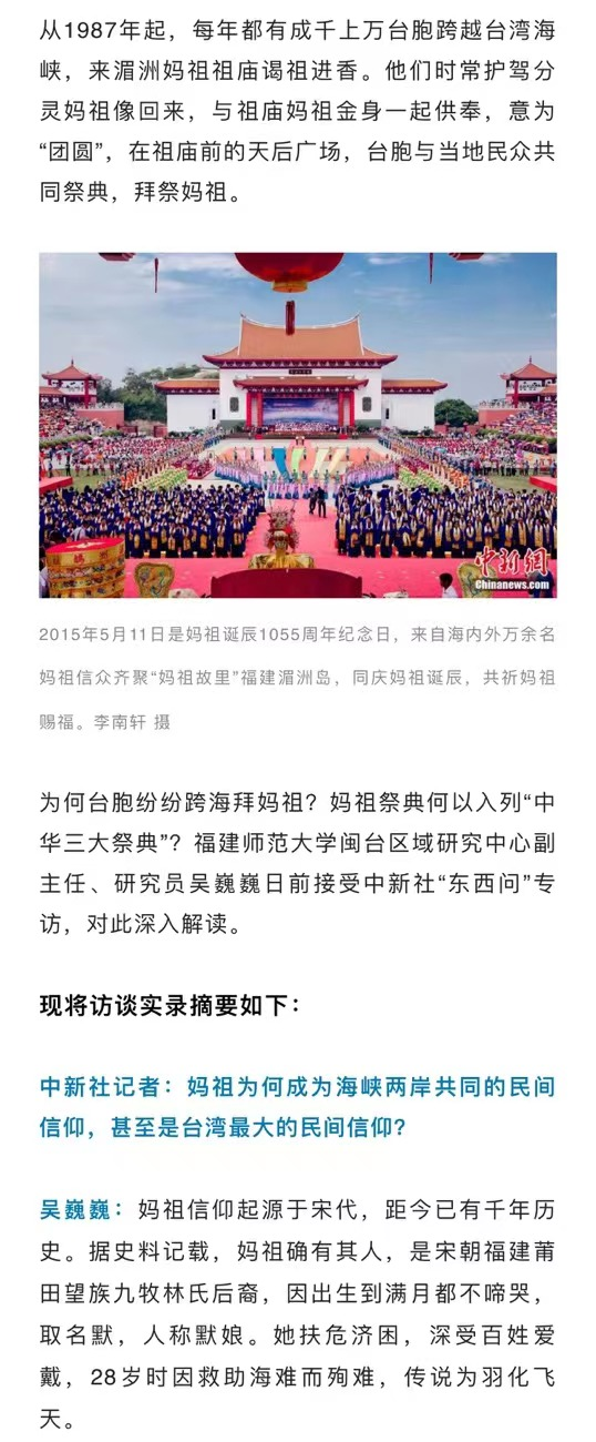 《吴巍巍:妈祖祭典何以入列“中华三大祭典”?| 东西问·两岸同祭》